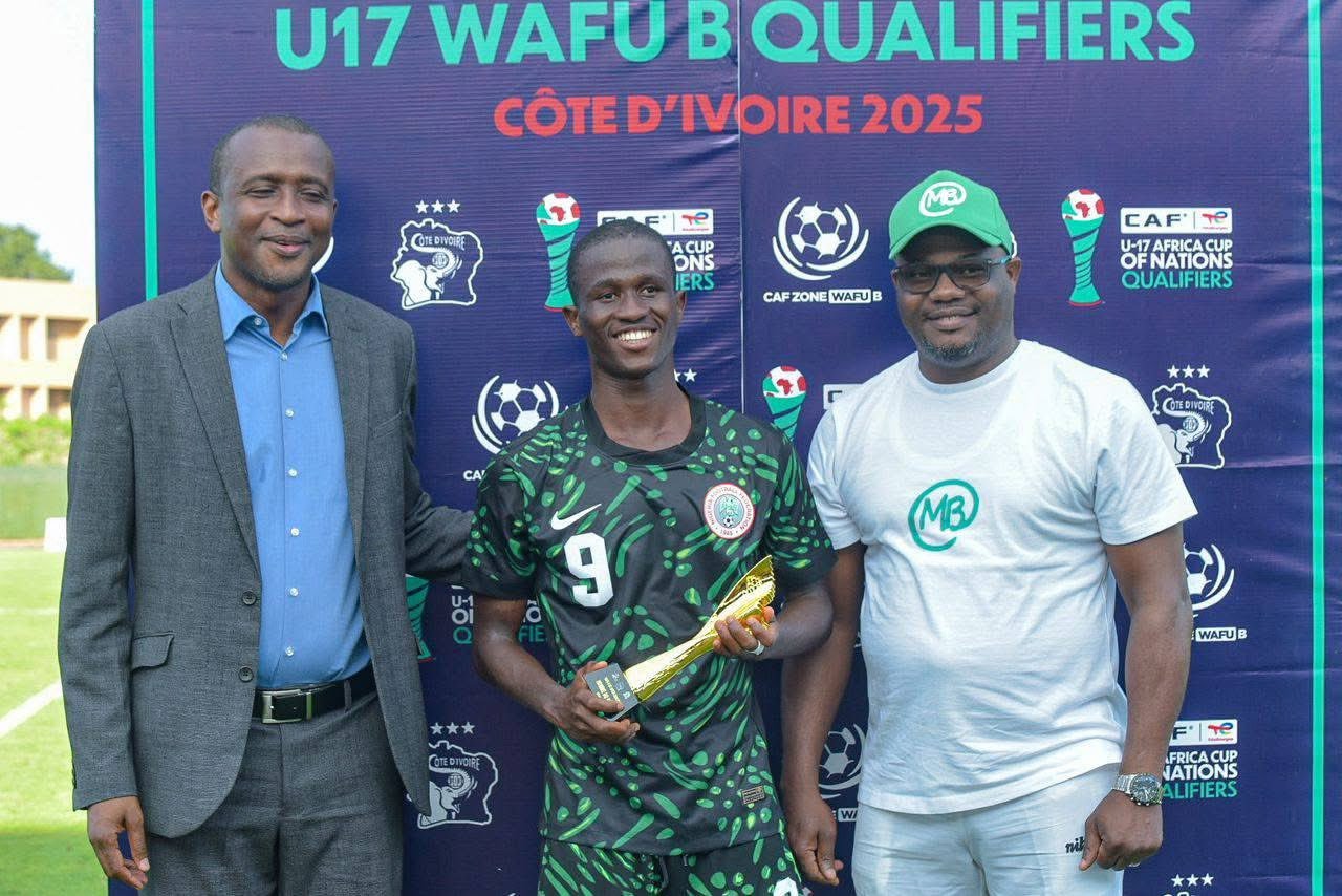 Golden Eaglets Agha with his man of the match award. Photo Credit: WAFU/X