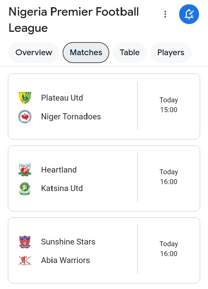 Later today, plateau United will take on Niger Tornadoes at home, Emmanuel Amunike’s Heartland FC will host Katsina United, while Sunshine Stars will take on Abia warriors.
