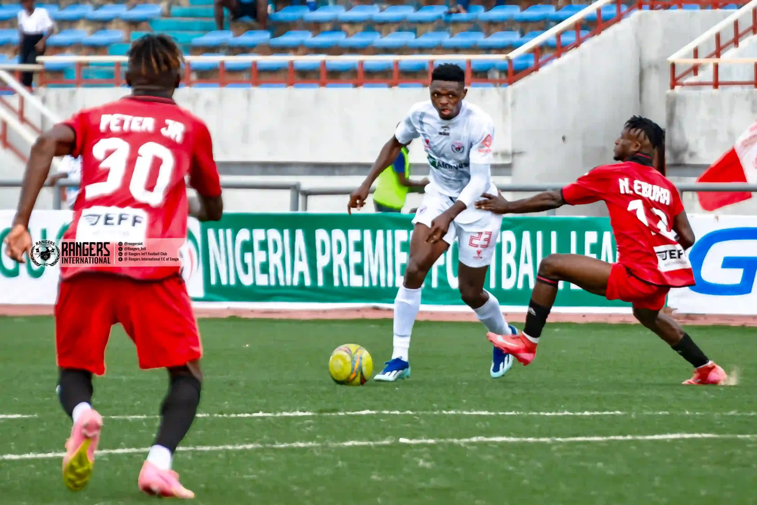 Rangers began with intensity as Chidiebere Nwobodo and Godwin Obaje caused early problems for the Plateau defence, but goalkeeper Amah produced several fine saves to keep the visitors level.