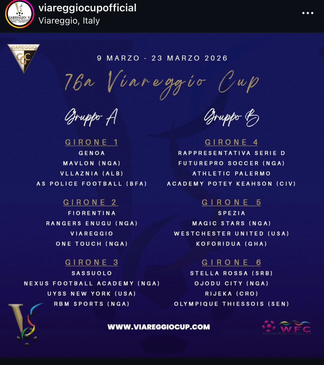 Nigeria has previously celebrated success in Viareggio, with Beyond Limits the only Nigerian side to have won the title, lifting the trophy in 2024.