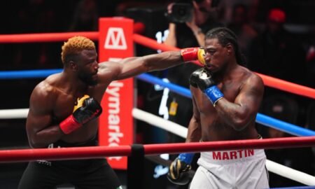 Efe Ajagba produced a commanding display to stop former IBF world champion Charles Martin in the fourth round of his Zuffa Boxing...